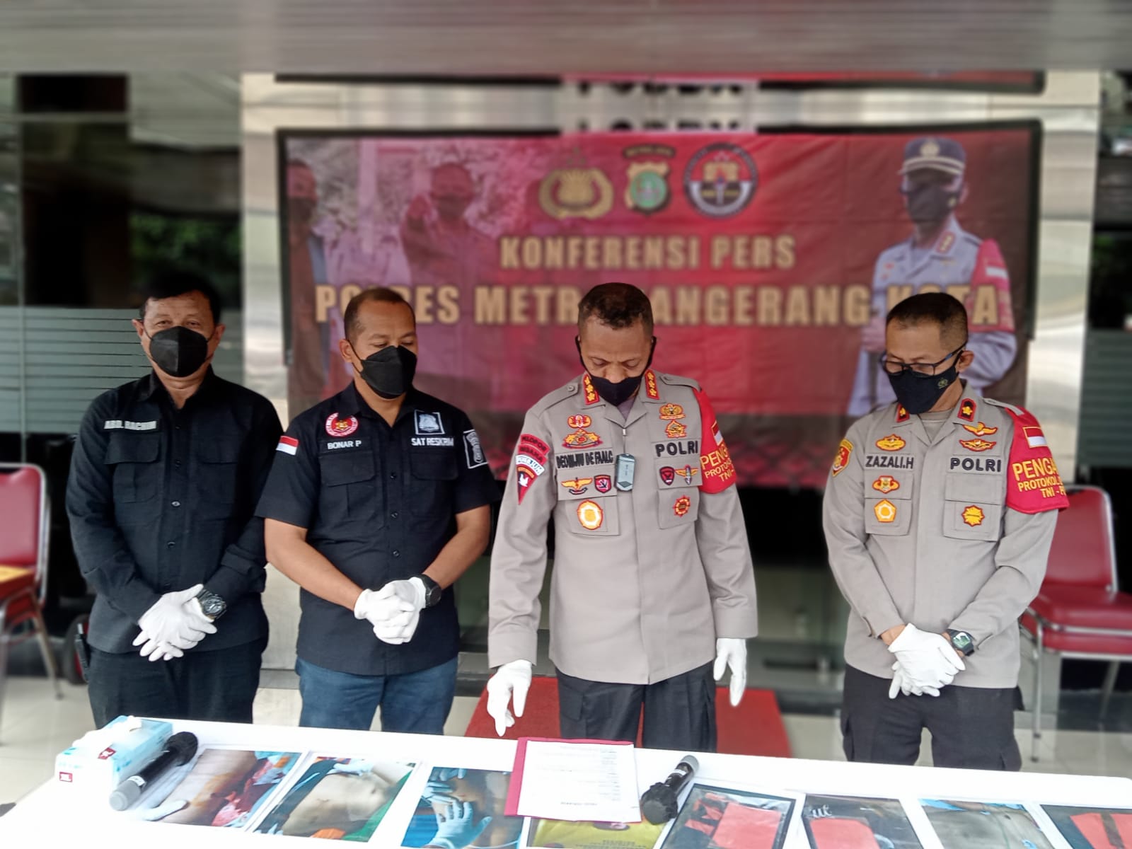 Kapolres Metro Kota Tangerang Kombes Deunijiu de Fatima didampingi Kapolsek Jatiuwung Kompol. Zazali Haryono menerangkan, masalah tersebut bermotif dendam lama.