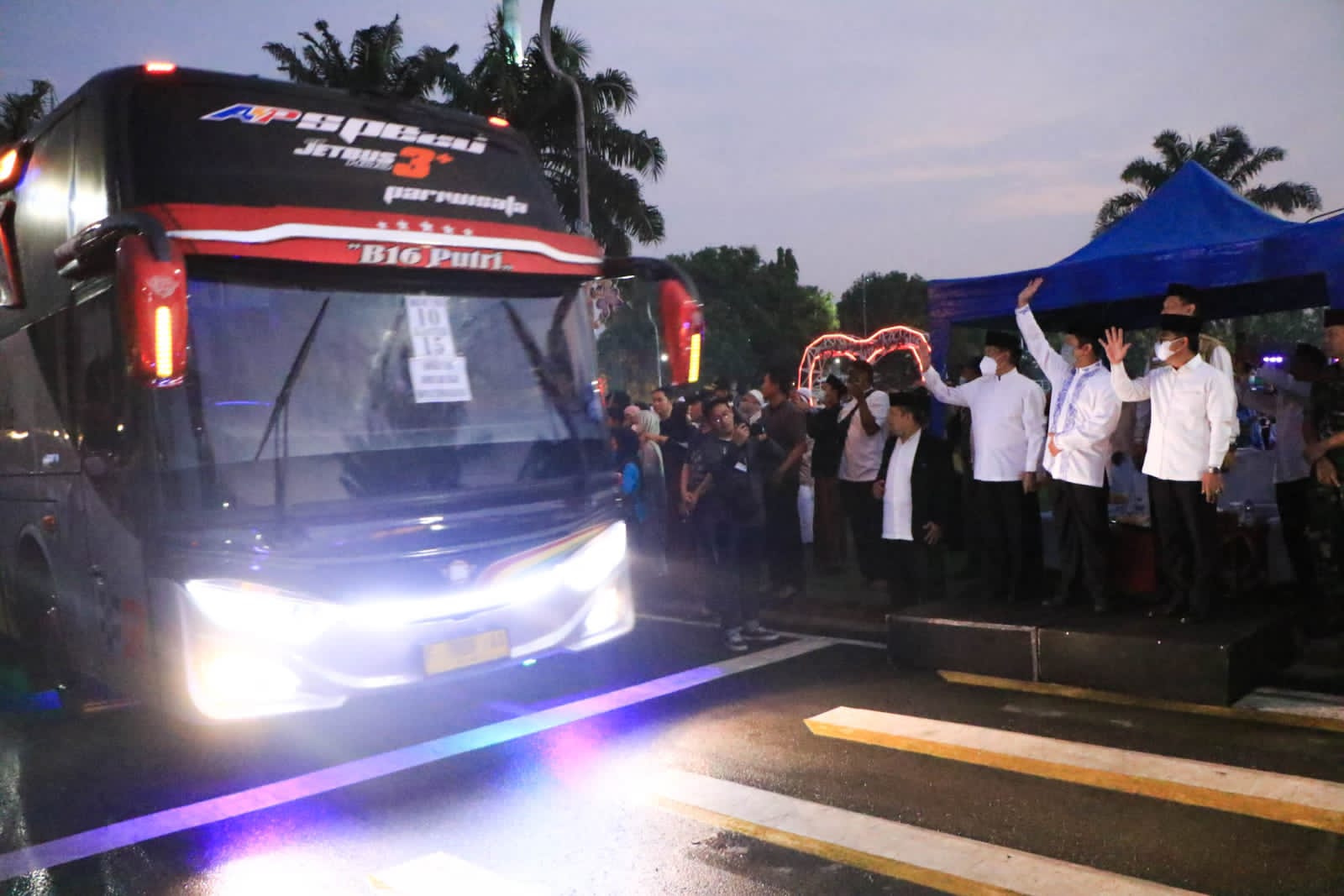 Wali Kota Tangerang H. Arief R. Wismansyah juga hadir secara langsung melepas keberangkatan 393 Calon Jamaah Haji Kota Tangerang Kloter 15 JKG/Banten, didampingi oleh Wakil Wali Kota Tangerang H. Sachrudin, Sekretaris Daerah Kota Tangerang Herman Suwarman, Ketua MUI Kota Tangerang Kepala Kementerian Agama Kota Tangerang dan unsur Forkopimda Kota Tangerang serta unsur Alim Ulama Kota Tangerang.