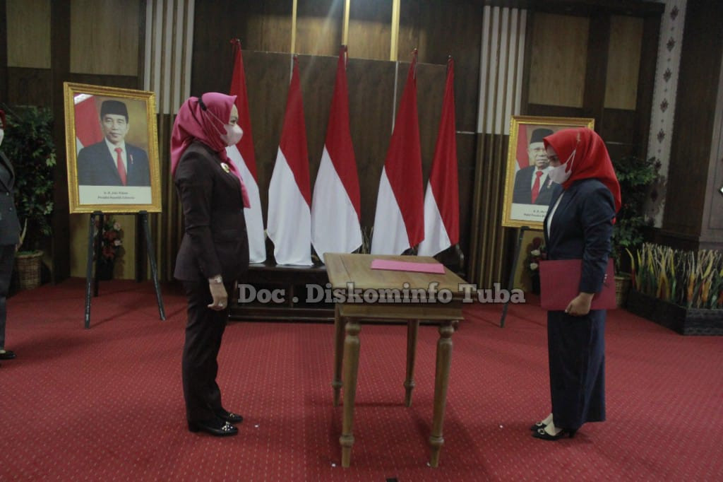 “Saya ucapkan selamat kepada saudara – saudara Pejabat Administrator dan Pengawas yang dilantik hari ini semoga amanah dan profesional dalam menjalankan tugas serta bertanggung jawab dan memiliki etos kerja juga loyalitas yang tinggi,” ujar Bupati Tulang Bawang Winarti.