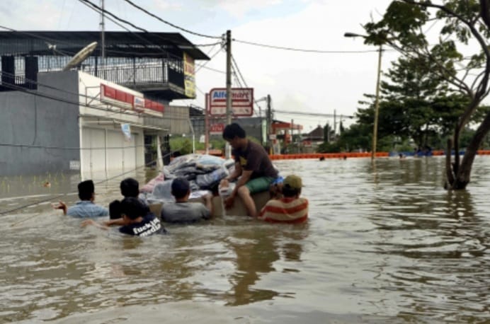 “Parah, rata dengan tanggul. Titik tertinggi 2 meter,” ujarnya, Minggu (21/2/2021).