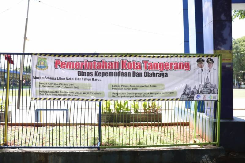 WANMEDIA.CO.ID, KOTA TANGERANG-Berdasarkan Surat Edaran Walikota Tangerang No: 180/6032-Bag. Hkm/2021 tentang Pemberlakukan Pembatasan Kegiatan Masyarakat (PPKM) Level 1, yang berlaku mulai 24 Desember hingga 1 Januari. Pemkot Tangerang melalui Dispora dan Disbudparman akan menutup sementara semua Alun-Alun dan Taman Tematik di Kota Tangerang, pada 30 Desember hingga 1 Januari mendatang.