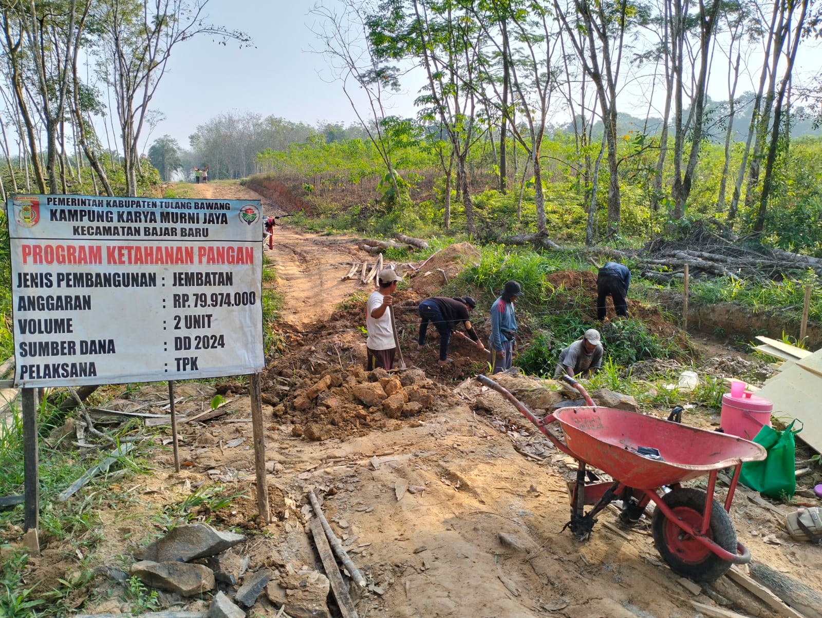 “Pembangunan dua unit jembatan ini merupakan program ketahanan pangan yang ada di Kampung Karya Murni Jaya. Dengan anggaran dari dana desa tahun 2024, sebesar Rp79.974.000 yang dikerjakan langsung tim pelaksana kegaiatan,” terang Kepala Kampung, Agus Gunawan, Kamis (24/7/25).