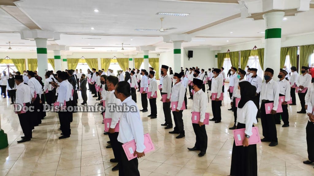 Bupati Tulangbawang didampingi Sekretaris Daerah (Sekda) Kabupaten Tulang Bawang,pejabat tinggi Pratama di lingkup Pemkab Tulang Bawang, Camat Se – Kabupaten Tulang Bawang.
