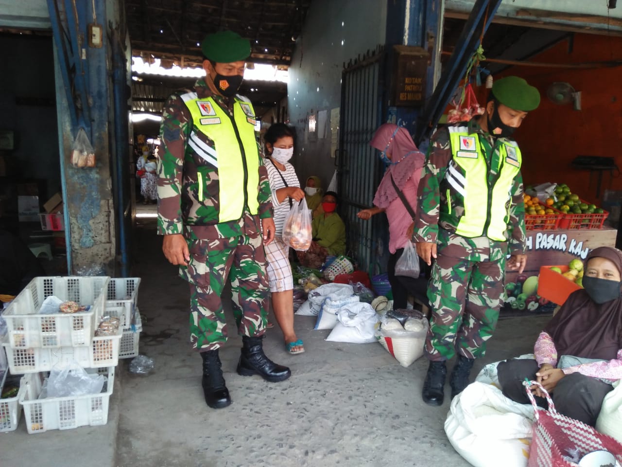 Wanmedia.co.id, Madiun – Anggota Koramil 0803/15 Kartoharjo, Kodim 0803/Madiun yang dipimpin oleh Serma Irwanto melaksanakan sosialisasi dan imbauan kepada masyarakat terkait pencegahan Virus Covid 19 yang bertempat di lokasi Pasar Kojo, Kelurahan Kanigoro, Kecamatan Kartoharjo, Kota Madiun, Sabtu (14/11/2020).