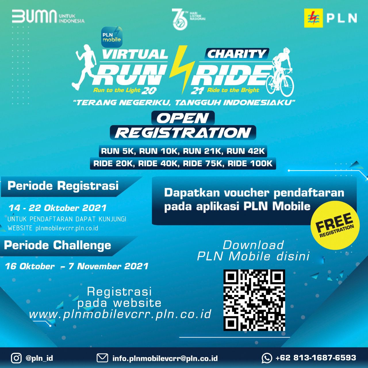 WANMEDIA.CO.ID, JAKARTA – PLN kembali menggelar kegiatan virtual charity run and ride pada 16 Oktober s.d. 07 November 2021. Virtual Charity Run and Ride sendiri merupakan ajang lari dan bersepeda yang bisa dilakukan di mana saja kapan saja dan dapat “dicicil” jarak lari dan bersepedanya untuk tujuan beramal.