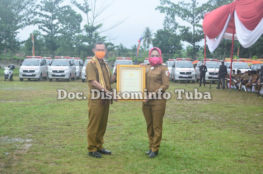 Penghargaan itu diserahkan langsung Sekda Provinsi Lampung, Fahrizal Darminto, saat peringatan Hari Kesehatan Nasional ke-57 di Lapangan Tritunggal Jaya, Kecamatan Banjaragung, Tulangbawang, Selasa, 7 Desember 2021.