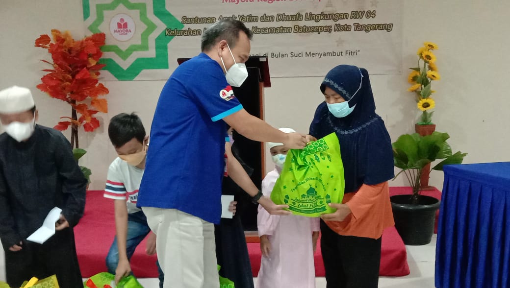 WANMEDIA.CO.ID, TANGERANG – Corporate Social Responsibility (CSR) Mayora Region Batuceper menggelar acara santunan anak Yatim dan Dhuafa bagi warga RW 04 Kelurahan Kebon Besar di Ruang Aula Mungbean Mayora Region Batuceper, Jumat (22/4/22).