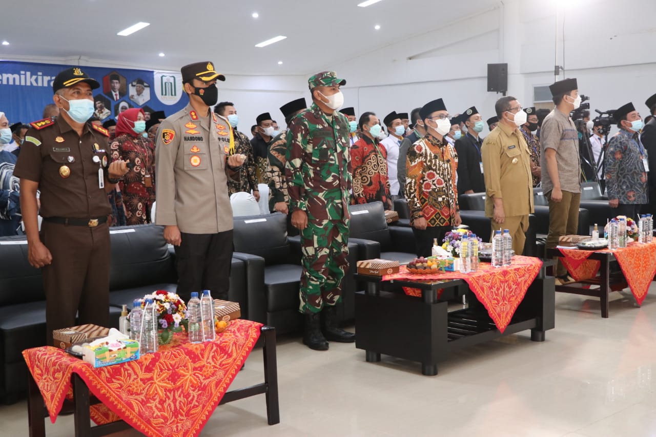 WANMEDIA.CO.ID, TULUNGAGUNG – Komandan Kodim 0807/Tulungagung Letkol Inf Mulyo Junaidi, S.E, M.Tr (Han) bersama Kapolres Tulungagung AKBP Handono Subiakto, S.H., S.I.K., M.H mendampingi Bupati Tulungagung Drs. Maryoto Birowo, M.M dalam acara pembukaan Muktamar Pemikiran yang digelar untuk pertama kalinya oleh Forum Dosen Alumni Pergerakan Mahasiswa Islam Indonesia (PMII) di Universitas Islam Negeri Sayyid Ali Rahmatullah Tulungagung (UIN SATU), Senin (05/04/2021).