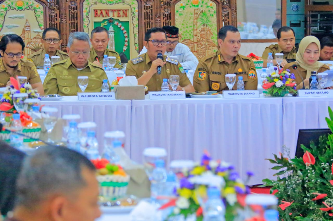 WANMEDIA.CO.ID, SERANG – Wakil Wali Kota Tangerang, H. Maryono Hasan, menyampaikan pentingnya sinergi antara pemerintah pusat, provinsi, dan kota dalam percepatan penanganan banjir, khususnya di wilayah Kota Tangerang. Hal ini ia sampaikan dalam dialog langsung bersama Ketua Majelis Permusyawaratan Rakyat Republik Indonesia (MPR RI), Ahmad Muzani, yang digelar dalam rangka kunjungan kerja ke Pemerintah Provinsi Banten di Aula Pendopo Gubernur Banten, Senin (14/07/2025).