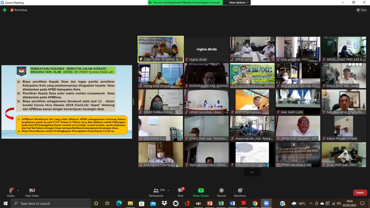 Evaluasi itu dipimpin langsung oleh Direktur Jenderal (Dirjen) Bina Pemdes Yusharto Huntoyungo di Ruang Nawasena, Gedung Ditjen Bina Pemdes pada Rabu (2/2/2022), dengan didampingi Direktur Penataan dan Administrasi Pemerintahan Desa Ditjen Bina Pemdes Aferi Syamsidar Fudail.