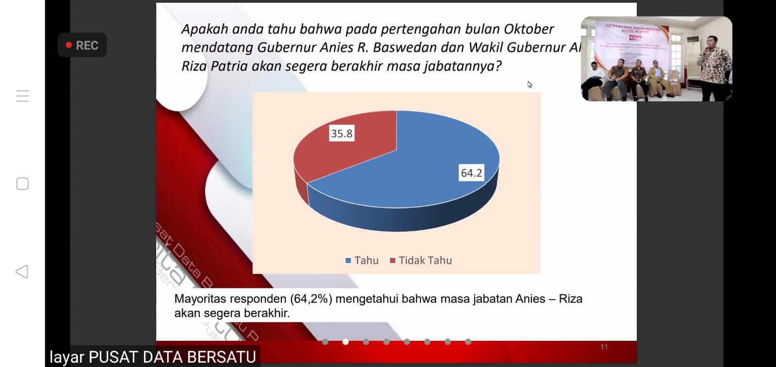 Dalam acara yang bertajuk “Jakarta Barometer Politik Nasional, sebuah harapan: Menjaga Momentum Kebangkitan Ekonomi Pasca Pandemi Covid-19,” yang diselenggarakan Pusat Data Bersatu (PDB) pada Kamis (29/9/2022), peneliti PDB Syarifuddin memaparkan survei yang dilakukan pihaknya.
