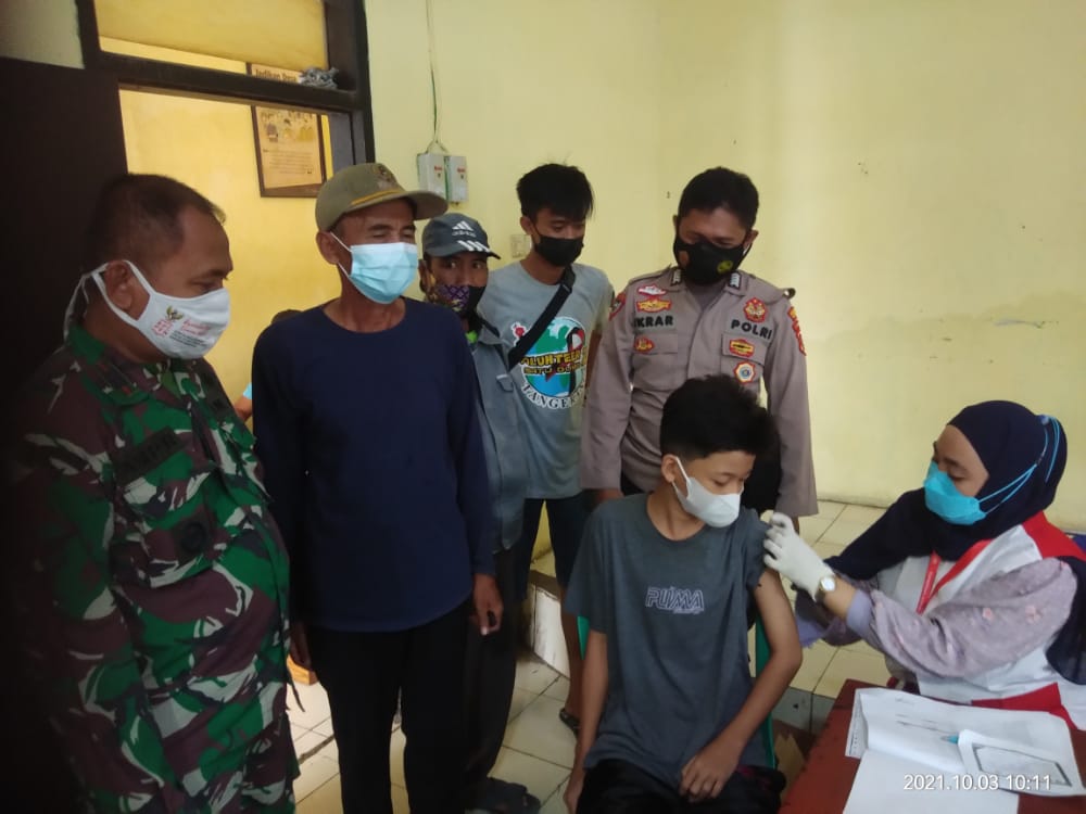 Dalam rangka mepercepat vaksinasi dan menyampikan pesan Katibmas agar Antisipasi jam jam rawan dan di tempat tempat rawan guna cegah kesempatan pelaku kejahatan di lingkungan Desa Sukamulya.