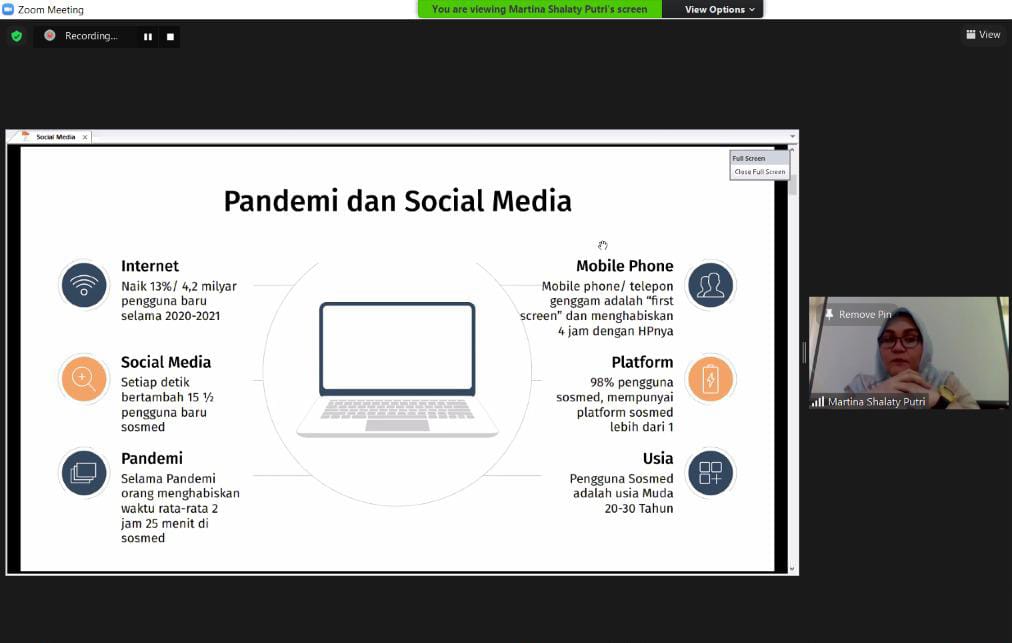 Acara dilaksanakan pada hari Selasa (02/02/2021) dan diikuti oleh 50 peserta pelaku bisnis. Materi yang disajikan mengenai Strategi Komunikasi Pemasaran, Digital Branding serta Pemanfaatan Media Sosial yang disampaikan langsung oleh para dosen Fakultas Ilmu Komunikasi Universitas Mercu Buana, yakni Dewi Ambarsari S.Sos., M.IKom, Alifiah Ghaniyyu W. S.IKom,. M.IKom, dan Martina Shalaty P. S.Sos., M.Si.