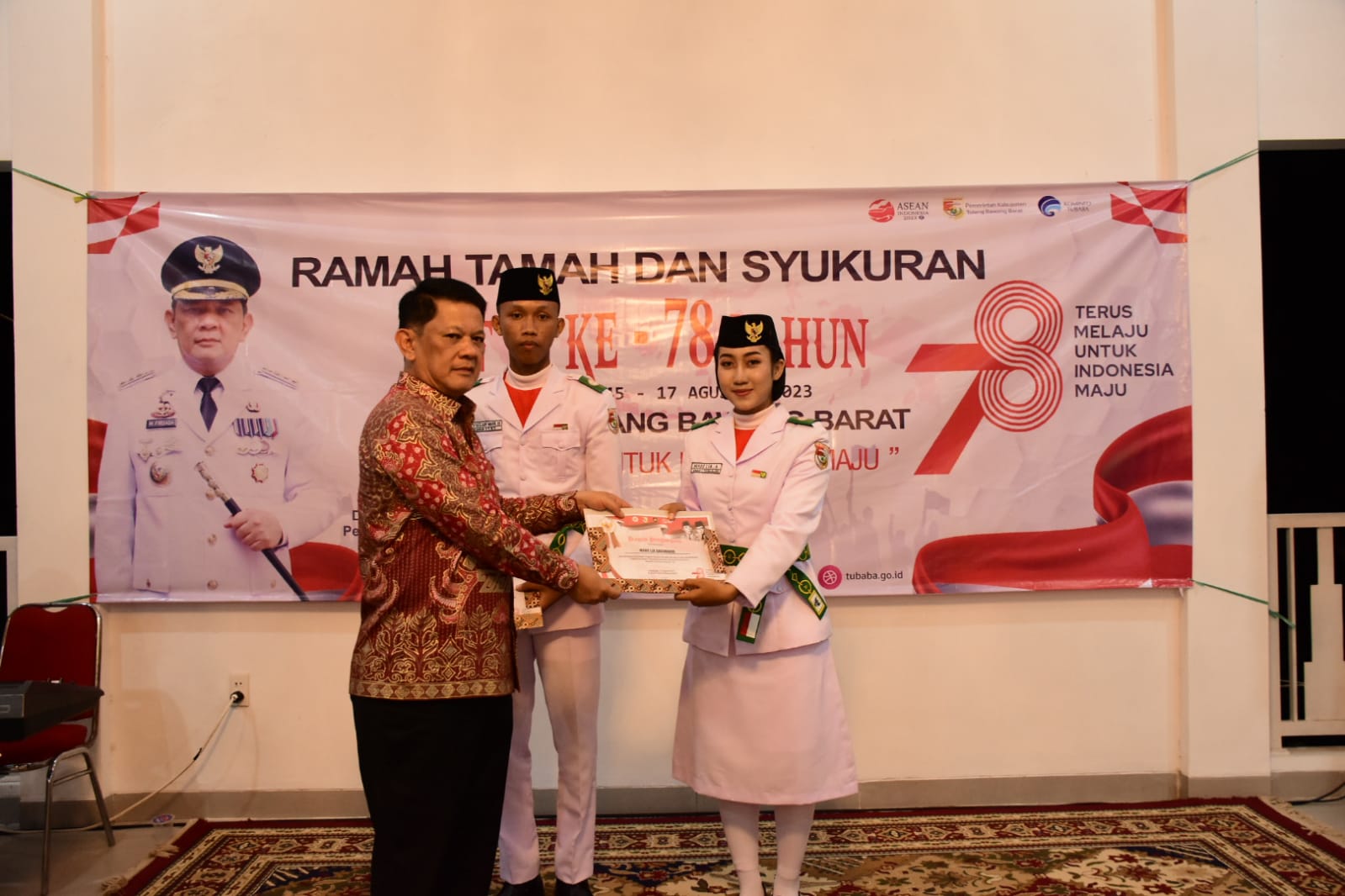 WANMEDIA.CO.ID, TUBABA – Saya berpesan kepada Adik-adik Paskibraka Tulangbawang Barat (Tubaba) yang telah sukses dalam mengemban tugas mulia hari ini. Adik-adik merupakan calon pemimpin masa depan oleh karenanya harus bisa menjadi tauladan yang baik untuk generasi penerus yang lain. Hal itu disampaikan Penjabat (Pj) Bupati Tubaba Drs. M. Firsada., saat acara ramah tamah dan syukuran dalam rangka memperingati Hari Ulang Tahun (HUT) ke-78 Republik Indonesia (RI), yang berlangsung di Aula Pertemuan Rumah Dinas Bupati setempat. Kamis (17/08/2023) malam.