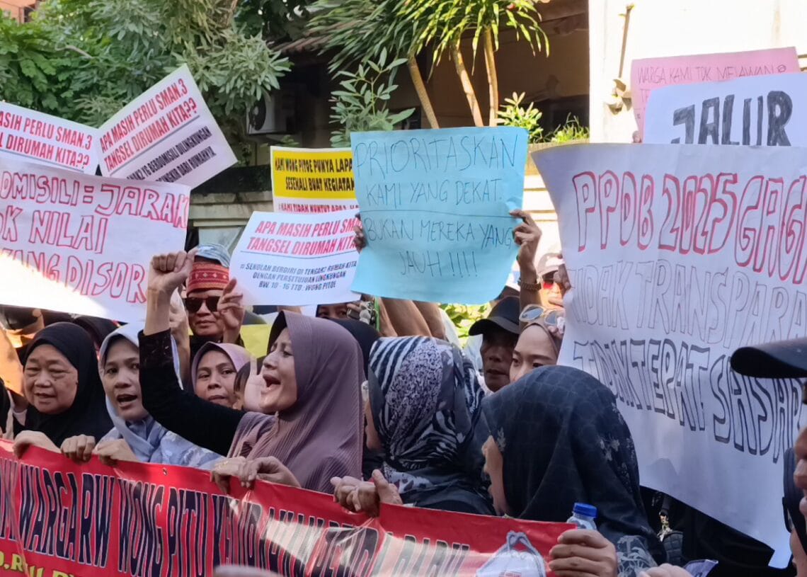 Mereka memprotes proses Sistem Penerimaan Murid Baru (SPMB) yang dinilai tidak adil dan merugikan warga sekitar sekolah.