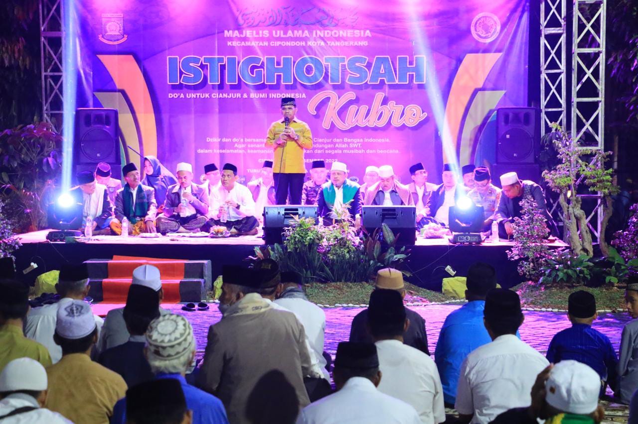 WANMEDIA.CO.ID, KOTA TANGERANG – Wakil Wali Kota Tangerang H. Sachrudin hadiri Istigosah Kubra dalam rangka do’a bersama untuk Cianjur dan Bumi Indonesia, yang diselenggarakan oleh Majelis Ulama Indonesia (MUI) Kecamatan Cipondoh, berlangsung di halaman kantor Kecamatan Cipondoh, Kota Tangerang, Jum’at, (23/12/2022) Malam.