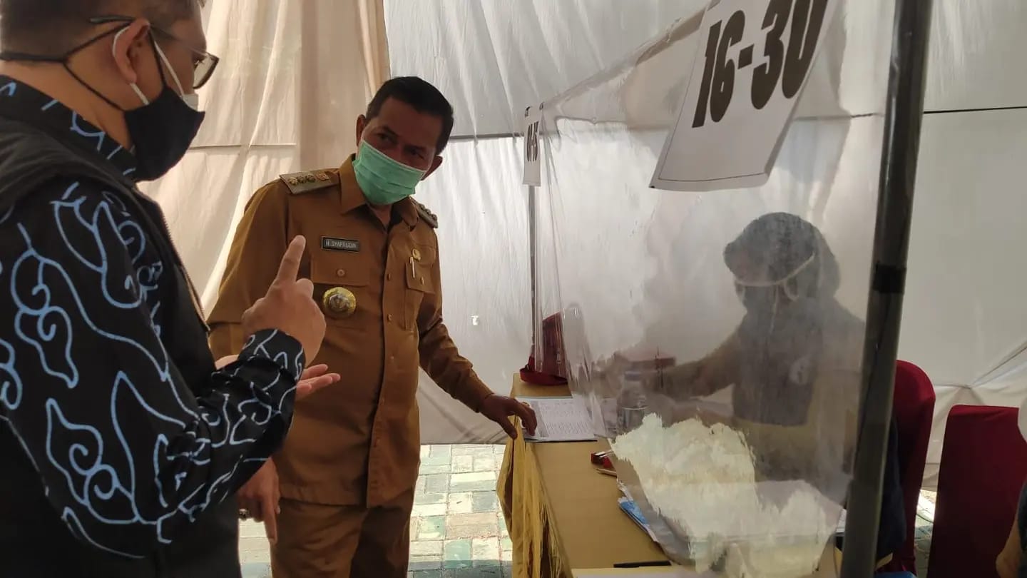 WANMEDIA.CO.ID, SERANG – Wali Kota Serang Syafrudin meninjau langsung pelaksanaan test CPNS yang diadakan oleh Pemerintah Kota Serang hari kelima yang pelaksanaannya akan berlangsung hingga 28 Oktober 2021 di salah satu hotel di Kota Serang, Senin (25/10/2021).