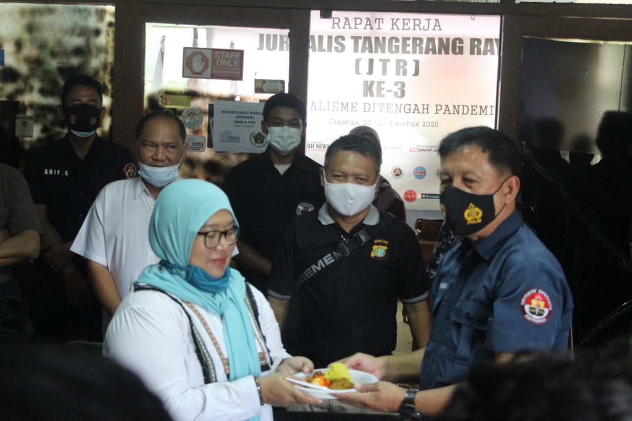 WANMEDIA.CO.ID, TANGERANG – Dalam rangka peringati HUT ke-69 Humas Polri. Kasubag Humas Polres Metro Tangerang Kota soan ke markas besar Jurnalis Tangerang Raya (JTR) di gedung pemda lama Kota Tangerang, Senin (2/11/20).
