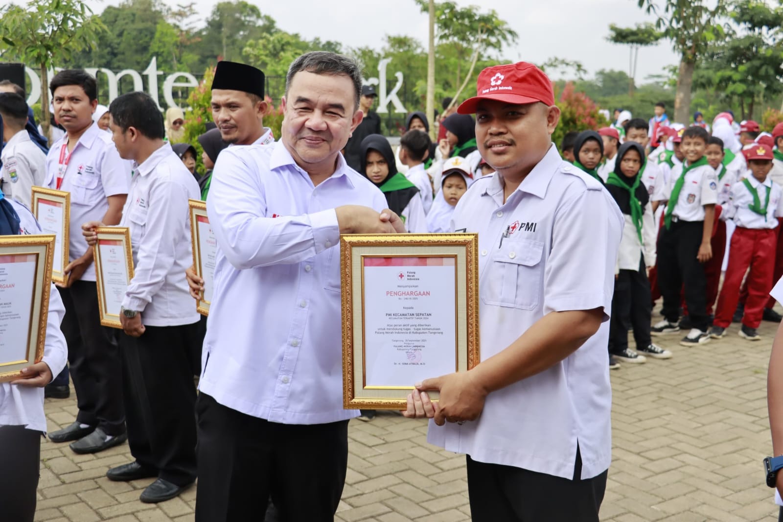 WANMEDIA.CO.ID, TANGERANG – Perayaan HUT ke-80 PMI tingkat Kabupaten Tangerang yang juga sebagai rangkaian dari HUT ke-393 Kabupaten Tangerang berlangsung meriah di Volunteer Park PMI, Kecamatan Solear, Minggu (28/09/25).