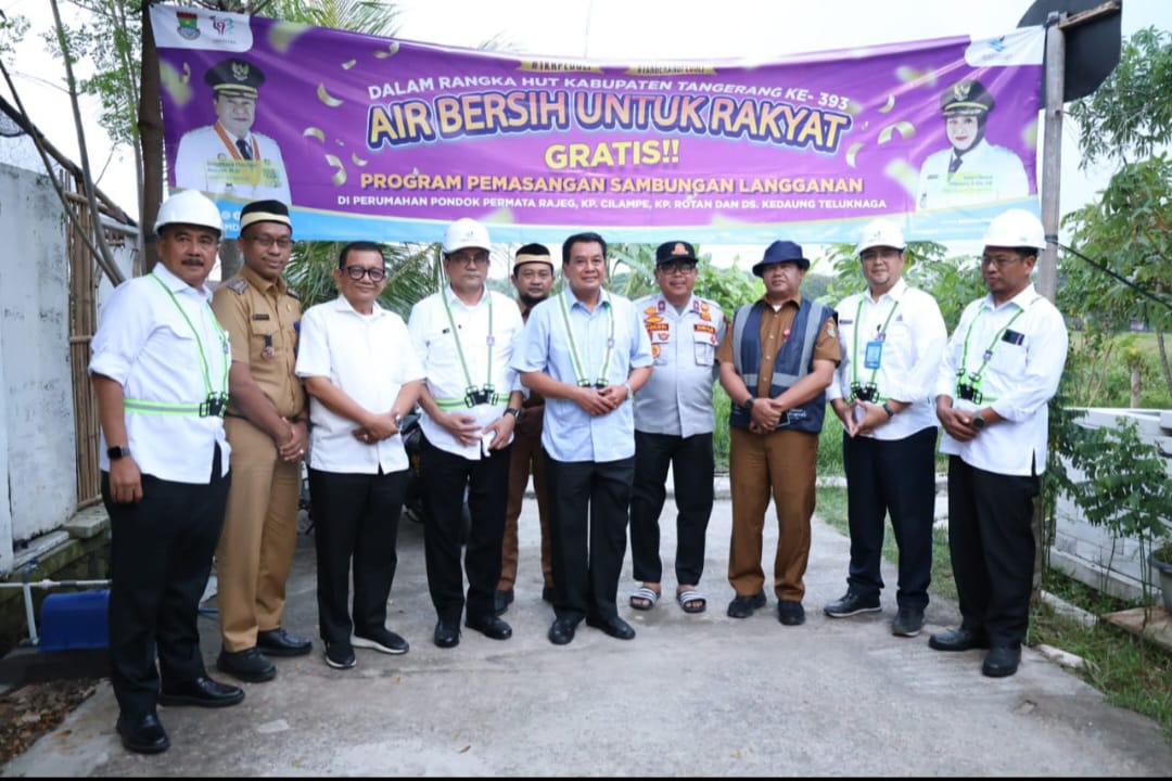 “Hari ini kami bersama Direktur Utama dan Dewas Perumdam TKR, Kadis Bina Marga, Kadis LHK, Kadishub, Camat Rajeg, dan Lurah Rajeg Mulya datang ke Perumahan Pondok Permata dalam rangkaian kegiatan HUT Kabupaten Tangerang ke-393. Alhamdulillah, kami baru saja melayani pemasangan sambungan air bersih kepada 200 rumah warga secara gratis,” ungkap Bupati Maesyal Rasyid.