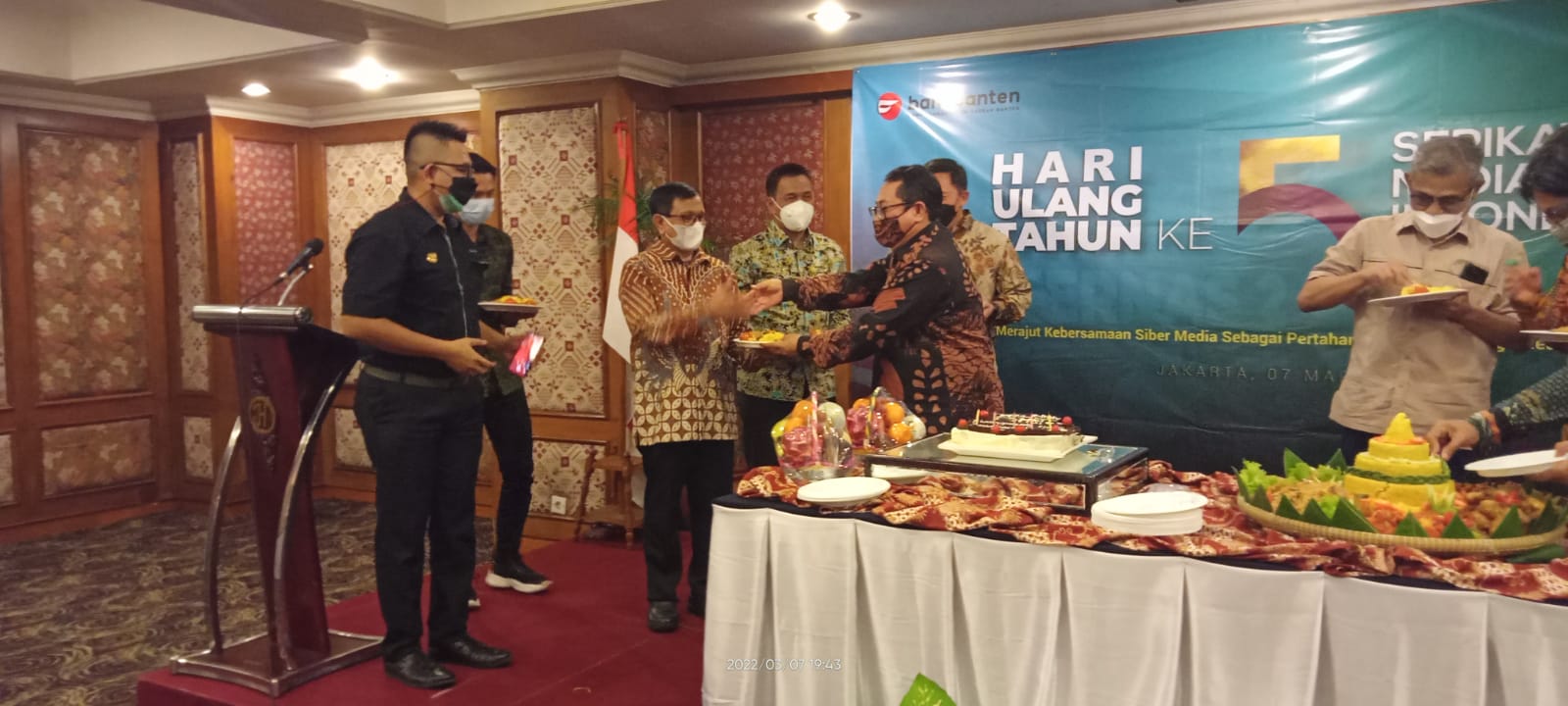 Acara yang berlangsung meriah itu dihadiri oleh para pimpinan SMSI dari 22 provinsi di Tanah Air. “Seyogyanya pertemuan ini dihadiri para pimpinan SMSI dari seluruh provinsi, tetapi karena masih dalam situasi pandemi Covid-19, maka tidak semua hadir,” kata Ketua Panitia HUT SMSI ke-5 Aat Surya Safaat.
