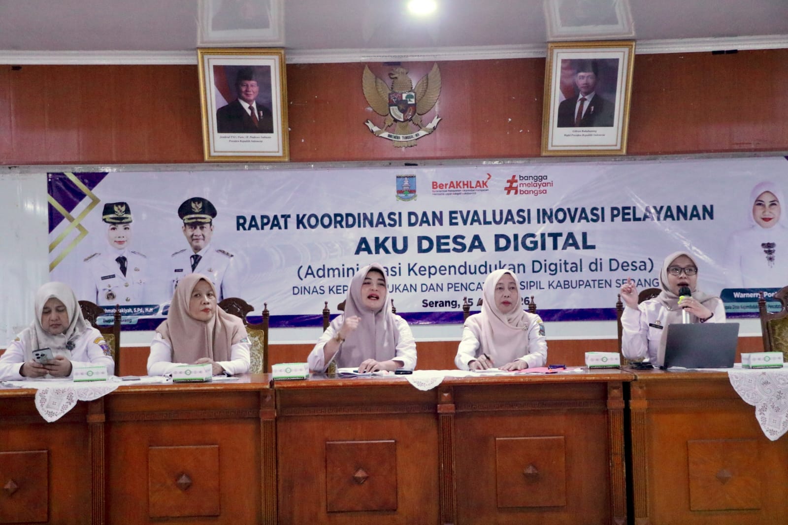 Hal ini disampaikan Pelaksana Tugas (Plt) Sekretaris Disdukcapil Kabupaten Serang, Sukristyorini usai Rapat Koordinasi dan Evaluasi Inovasi Pelayanan AKU DESA DIGITAL (Administrasi Kependudukan Digital di Desa) di Aula Tb. Suwandi pada Rabu, 15 April 2026.