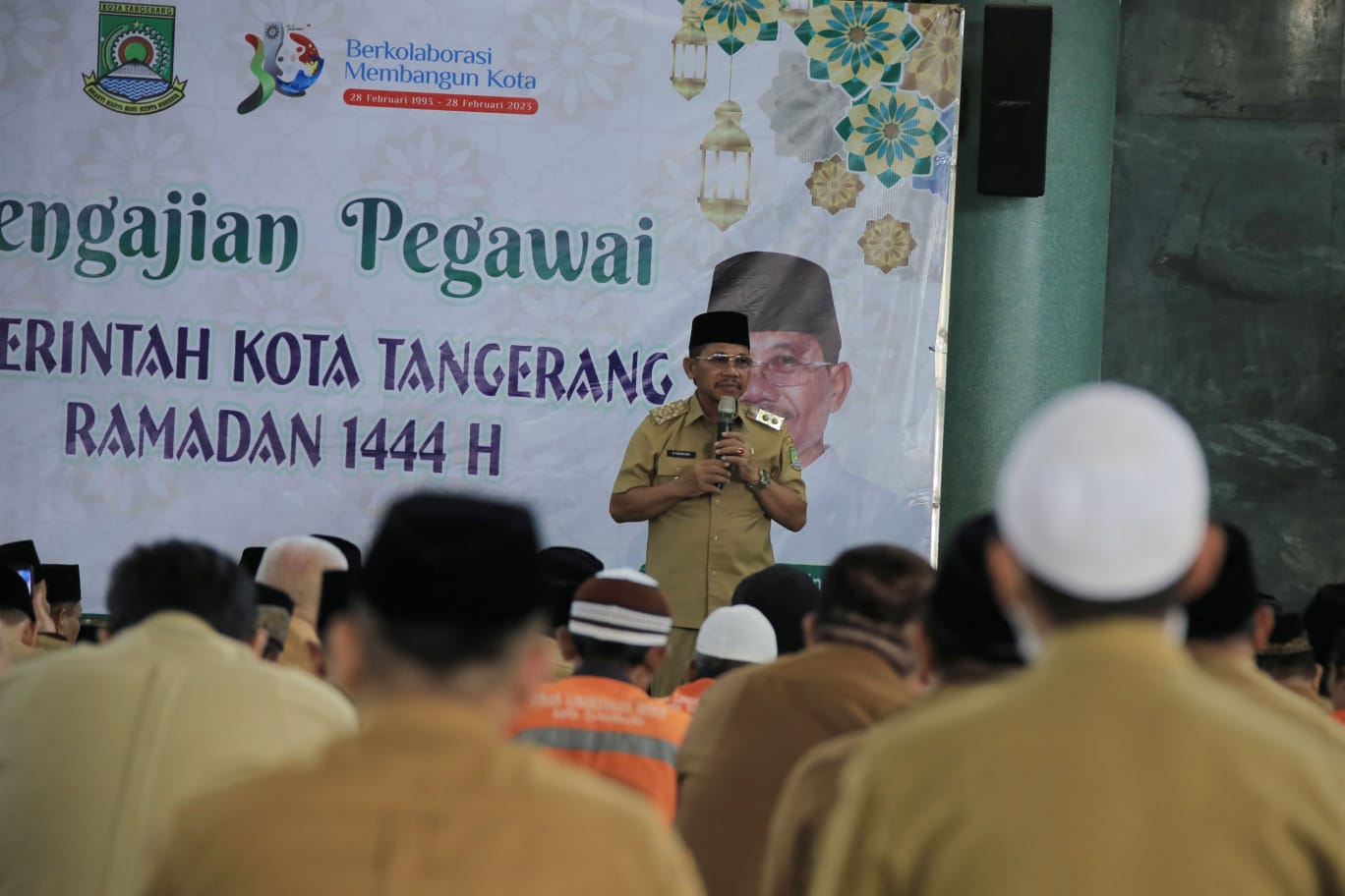 Bantuan Paket Sembako tersebut diserahkan secara simbolis oleh Wakil Wali Kota Tangerang, H. Sachrudin dalam kegiatan Pengajian Rutin Pegawai Pemkot Tangerang bertempat di Masjid Raya Al-Azhom, Selasa (18/04).