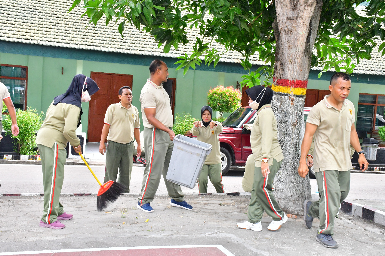 “Aksi bersih-bersih ini sebagai upaya kami untuk terus memelihara lingkungan satuan, agar selalu terlihat bersih, rapi dan asri, serta tentunya enak dipandang,” ujarnya.