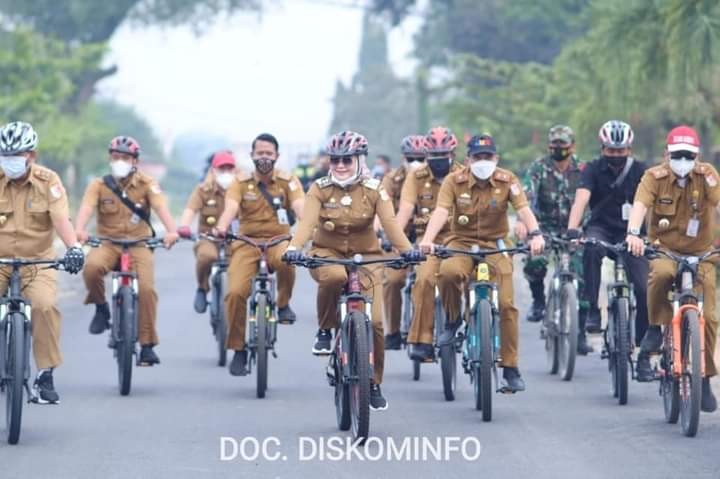Dedi Palwadi beserta Bupati Winarti dan rombongan melewati Jalan Ronggolawe yang baru selesai ditingkatkan. Dengan menggunakan sepeda, rombongan bersepeda dengan tetap menerapkan Protokol Kesehatan (prokes) Ketat.