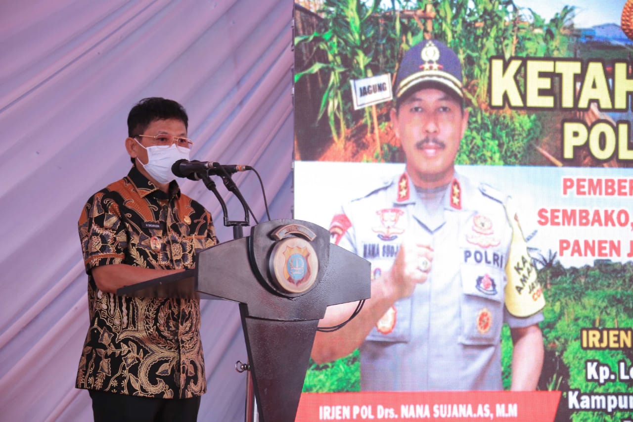 Sebagai informasi, luas lahan tidur yang dimanfaatkan sebesar 10 hektar, kegiatan peresmian ini sekaligus melakukan penanaman Palawija dan tanaman produktif lainnya, dibagikan juga alat pertanian untuk bercocok tanam, penyebaran puluhan ribu benih ikan nila, serta dibagikan juga 1.000 paket sembako untuk masyarakat yang terkena dampak pandemi Covid-19.(yanto/hms)