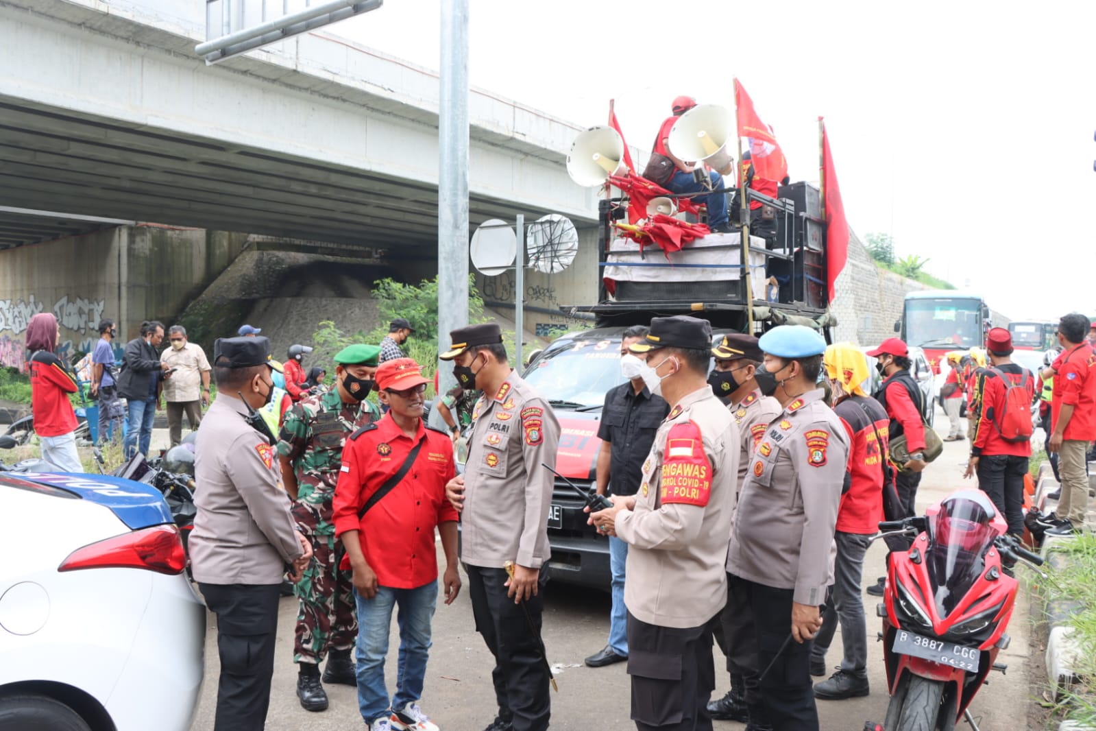 WANMEDIA.CO.ID, TANGERANG – Polres Metro Tangerang Kota kerahkan 61 Personil gabungan Polri -TNI Kawal buruh menuju Jakarta di perbatasan Jalan Daan Mogot KM 19,8, Poris Jaya Kecamatan Batuceper Kota Tangerang, Banten.