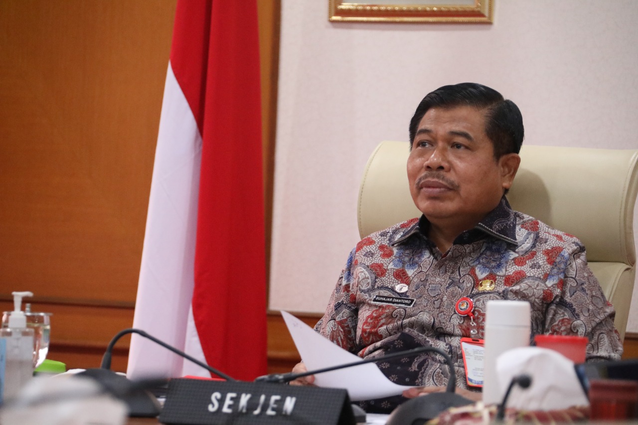 Wanmedia.co.id, Jakarta – Kementerian Dalam Negeri (Kemendagri) menggelar Rapat Koordinasi (Rakor) Monitoring Kestabilan Harga Bahan Pangan dan Pengendalian Inflasi Daerah secara virtual, Jumat (1/4/2022). Rakor, yang dipimpin Sekretaris Jenderal (Sekjen) Kemendagri Suhajar Diantoro, itu dilakukan dalam rangka menyambut bulan Ramadhan. Acara ini dihadiri oleh Sekretaris Daerah (Sekda) selaku Ketua Satuan Tugas (Satgas) Pangan Daerah beserta jajaran perangkat daerah seluruh provinsi di Indonesia.