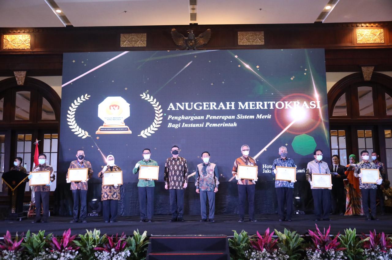 Undang-Undang Nomor 5 Tahun 2014 tentang Aparatur Sipil Negara mengamanatkan penerapan sistem merit dalam kebijakan dan manajemen Aparatur Sipil Negara (ASN). Dalam Undang-Undang tersebut, sistem merit didefinisikan sebagai kebijakan dan manajemen ASN yang berdasarkan pada kualifikasi, kompetensi, dan kinerja, yang diberlakukan secara adil dan wajar dengan tanpa diskriminasi. Tujuan penerapan sistem merit adalah untuk memastikan jabatan di birokrasi pemerintah diduduki oleh orang-orang yang profesional, dalam arti kompeten dan melaksanakan tugas berdasarkan nilai dasar, kode etik dan kode perilaku ASN.