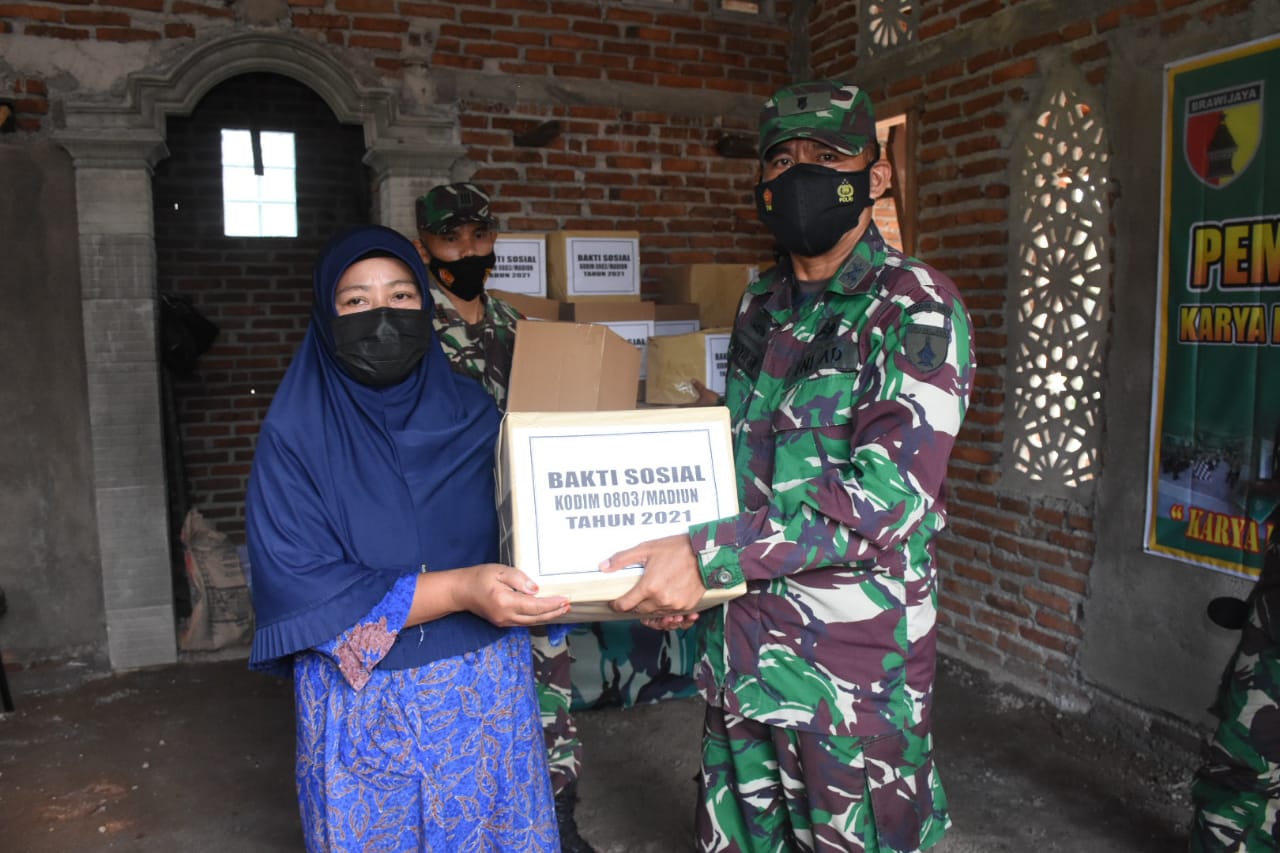 Dalam kegiatan bakti sosial kali ini ada beberapa paket sembako dan santunan yang diserahkan kepada masyarakat kurang mampu. Hal ini merupakan bentuk silaturahmi sekaligus perhatian dari TNI dalam hal ini Kodim 0803/Madiun kepada masyarakat yang kurang mampu yang terdampak pandemi covid-19.