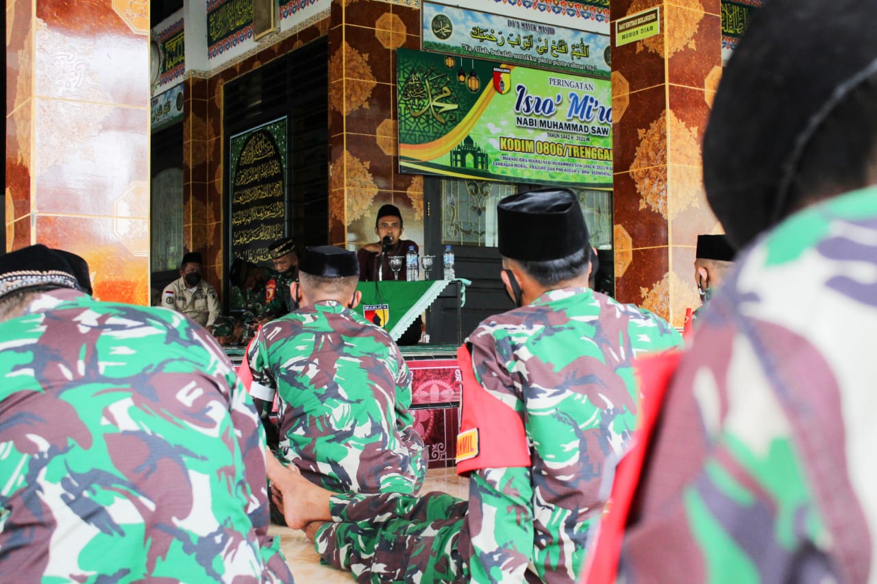 WANMEDIA.CO.ID, TRENGALEK – Dalam memperingati Isra’ Mi’raj Nabi Muhammad SAW 1442 H / 2021 M, Kodim 0806/Trenggalek menggelar acara pengajian yang di ikuti seluruh Prajurit dan PNS jajaran Kodim 0806/Trenggalek. Kegiatan diselenggarakan di Masjid An Nuur Makodim 0806/Trenggalek, Jl. Raya Ponorogo – Trenggalek KM. 03, Buluangung, Kecamatan Karangan, Trenggalek, Senin (15/3/21).