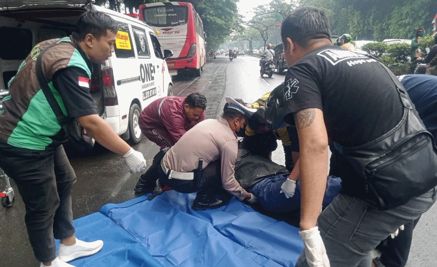 Terkait kejadian lakalantas di Jalan Jenderal Sudirman, KM 10, Kelurahan Buaran Indah, Kecamatan Tangerang, Kota Tangerang telah ditangani Satlantas Polres Metro Tangerang Kota. Korban di duga meninggal dunia di lokasi kejadian.(Marsudin)