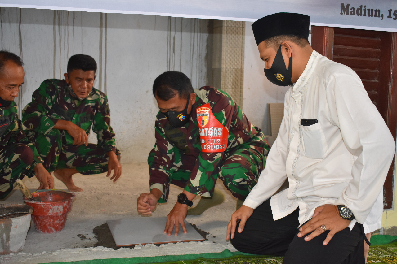 Wanmedia.co.id Jatim-Guna meningkatkan keimanan dan ketaqwaan masyarakat di wilayah binaannya, Korem 081/DSJ menunjukkan kepeduliannya dengan menyerahkan bantuan berupa hibah keramik untuk Masjid Al Baroya di Desa Sambirejo, Kec. Jiwan, Kab. Madiun, Kamis (15/10/2020).