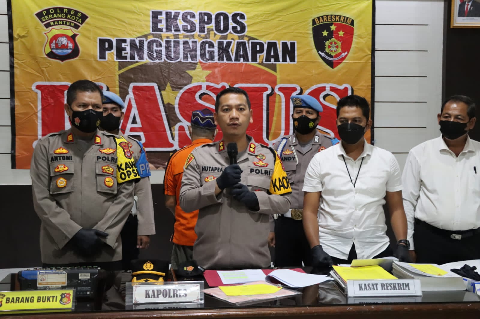 WANMEDIA.CO.ID, SERANG – Polresta Serang Kota menggelar press conference pengungkapan kasus dugaan tindak pidana korupsi di Dewan Kesenian Banten dari APBD Provinsi Banten tahun 2017 bertempat di Aula Polresta Serang Kota pada Senin (04/04).