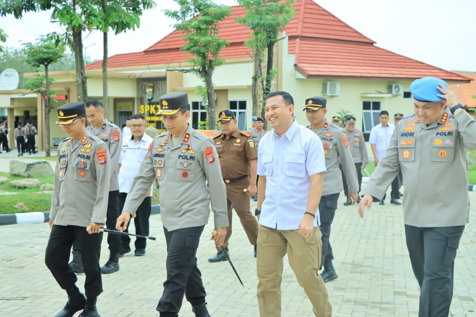Rombongan kunjungan kerja Kapolda Lampung ke Polres Tulang Bawang Barat di sambut langsung oleh Kapolres Tulang Bawang Barat AKBP Ndaru Istimawan, S.IK dan jajar hormat oleh personel Samapta Polres Tulang Bawang Barat.