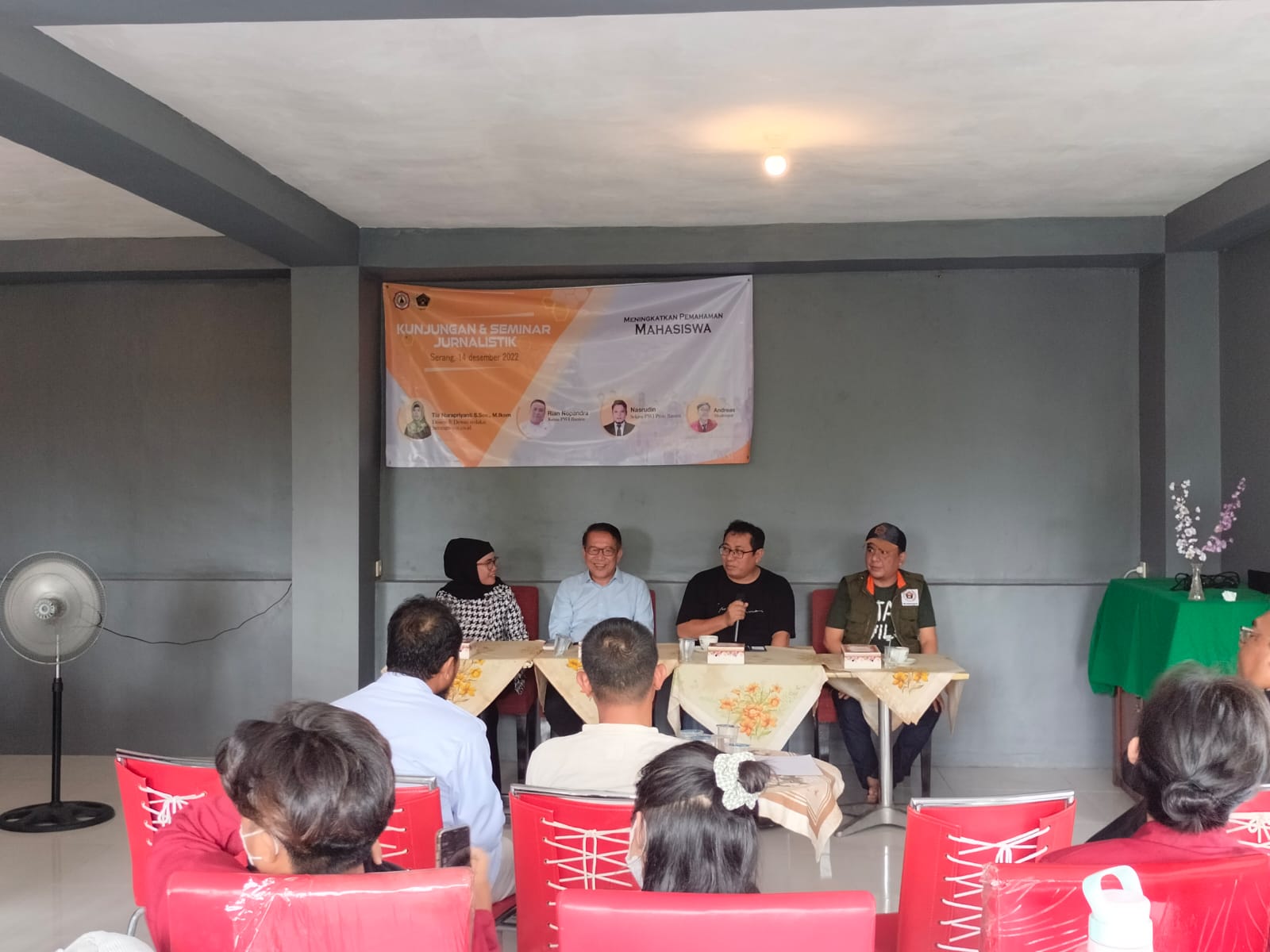 Hadir dalam seminar tersebut, Sekretaris Dewan Kehormatan PWI Banten, Media Sucahya yang juga Dosen Universitas Serang Raya, Ketua PWI Banten Rian Nopandra, serta Wakil Ketua Bidang Pendidikan PWI Banten Ahmad Fauzi Chan.(Sarip)