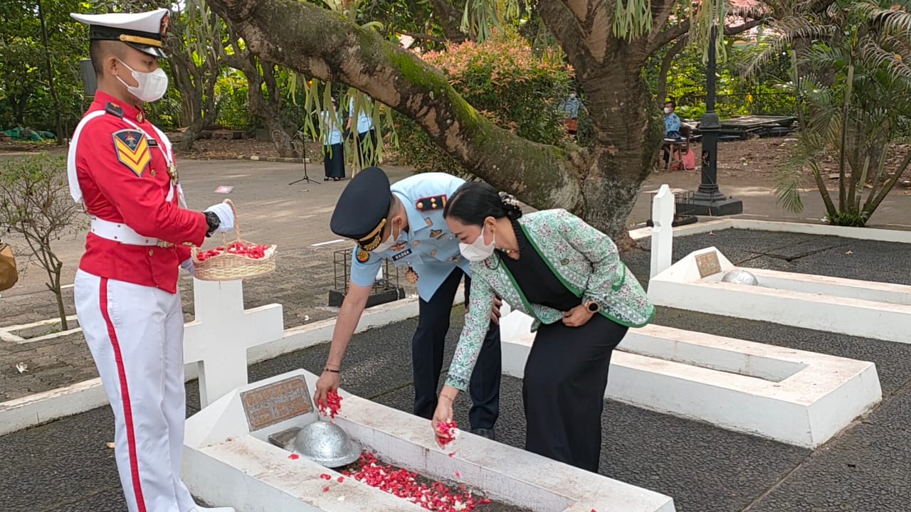 Acara kemudian dilanjutkan dengan peletakan karangan bunga. Kemudian dilanjutkan dengan tabur bunga di atas makam para pahlawan oleh Inspektur Upacara yang kemudian juga dilakukan oleh seluruh peserta upacara. (Saripudin)