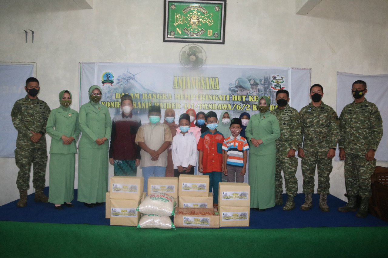 “Saya berharap bantuan ini tidak dilihat dari jumlahnya, tetapi yang terpenting adalah makna kepedulian terhadap sesama. Apa yang diberikan merupakan ungkapan rasa syukur dalam rangka HUT ke-54 Yonif Mekanis Raider 411/Pandawa/6/2 Kostrad. Semoga dapat dimanfaatkan sebaik-baiknya dan santunan ini memberikan banyak manfaat dan berkah serta kebahagiaan untuk anak-anak panti sebagai generasi penerus bangsa kelak,” ucap Danyonif.