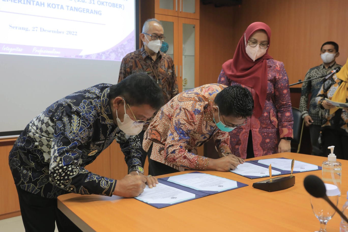 WANMEDIA.CO.ID, KOTA TANGERANG – Wakil Wali Kota Tangerang H. Sachrudin didampingi Inspektur Kota Tangerang Dadi Budaeri dan Kepala BPKD Kota Tangerang Tatang Sutisna menerima dan menandatangani Berita Acara Penyerahan Laporan Hasil Pemeriksaan Kepatuhan Atas Manajemen Aset Tahun 2022 (sampai dengan 31 Oktober) Pada Pemerintah Kota (Pemkot) Tangerang oleh Badan Pemeriksa Keuangan (BPK) Perwakilan Provinsi Banten di Ruang Rapat Anyer, Kantor BPK Perwakilan Provinsi Banten, Serang, Selasa (27/12/2022).