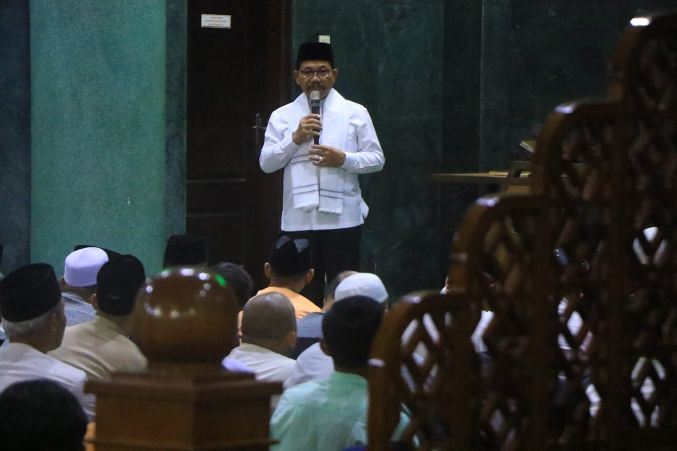 “Bulan yang kita nanti-nantikan akhirnya tiba. Bulan penuh keberkahan dan kemuliaan, yang tentunya harus kita sambut dengan penuh suka cita dan kebaikan,” tutur wali kota, dalam kultumnya usai salat Isya menjelang tarawih.