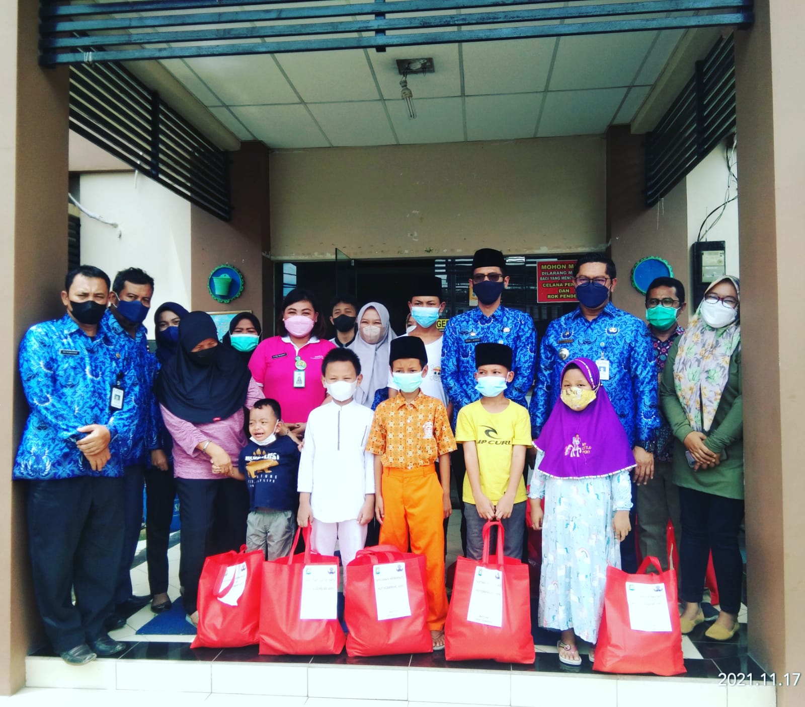 Seperti di kecamatan Periuk melakukan kegiatan santunan kepada anak yatim yang dihadirkan dihalaman, Kelurahan Sangiang Jaya, Kecamatan Periuk, Kota Tangerang, Rabu (17/11/21).