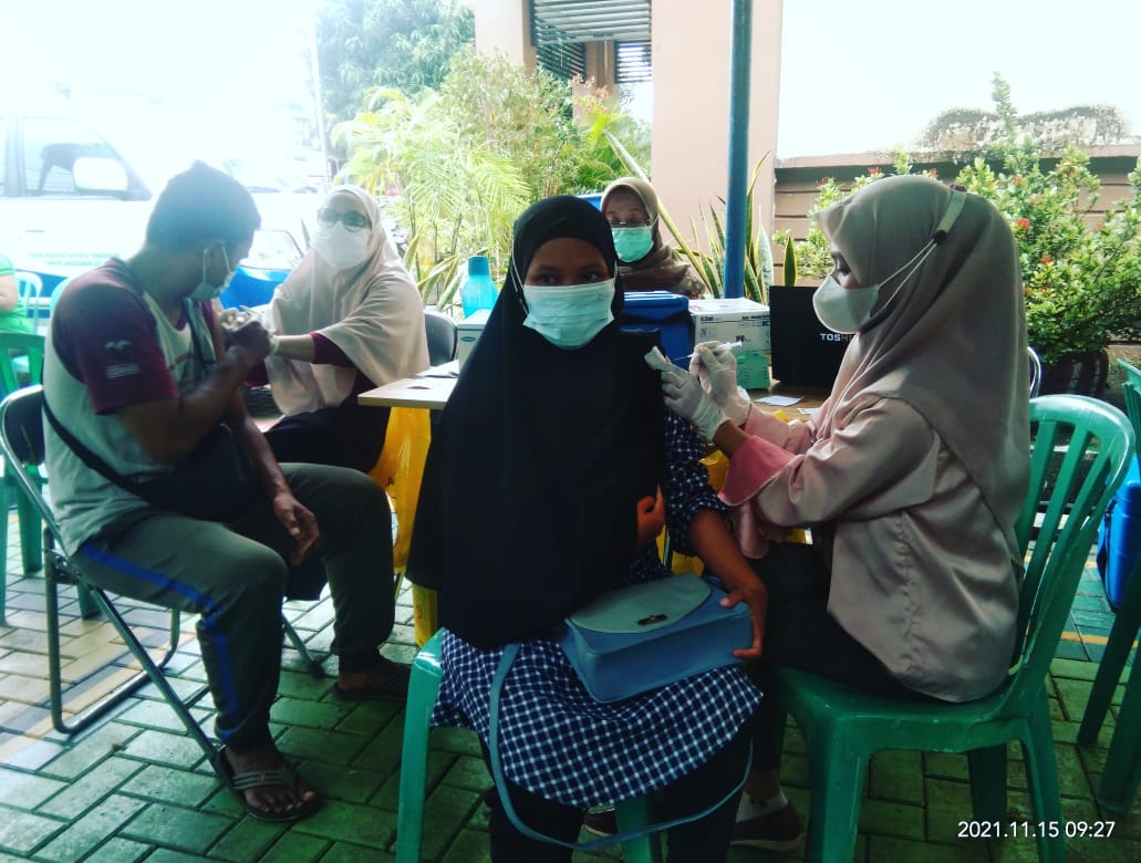WANMEDIA.CO.ID, TANGERANG – Dalam rangka mencapai Herd Immunity, Unit Pelaksana Teknis ( UPT) Dinas Kesehatan melalui Puskesmas Sangiang menggelar pemberian vaksinasi dosis Pfizer dan Sinovac kepada warganya, dihalaman, Kelurahan Sangiang, kecamatan Periuk, Kelurahan Sangiang Jaya, Kota Tangerang, senin (15/11/2021).