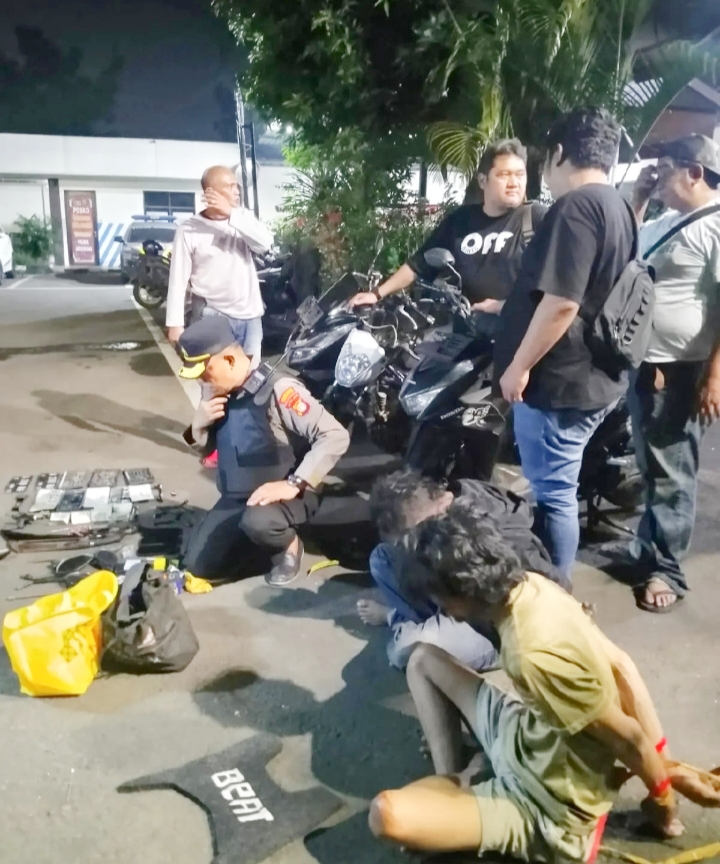 Kedua pelaku diketahui berinisial A.R (30) dan S (32). Dari lokasi penangkapan, polisi mengamankan sejumlah barang bukti berupa kunci T, tiga bilah senjata tajam jenis golok, tiga unit telepon genggam, serta tiga unit sepeda motor masing-masing Honda Beat Street warna hitam, Suzuki Satria FU warna putih, dan Honda PCX warna hitam.