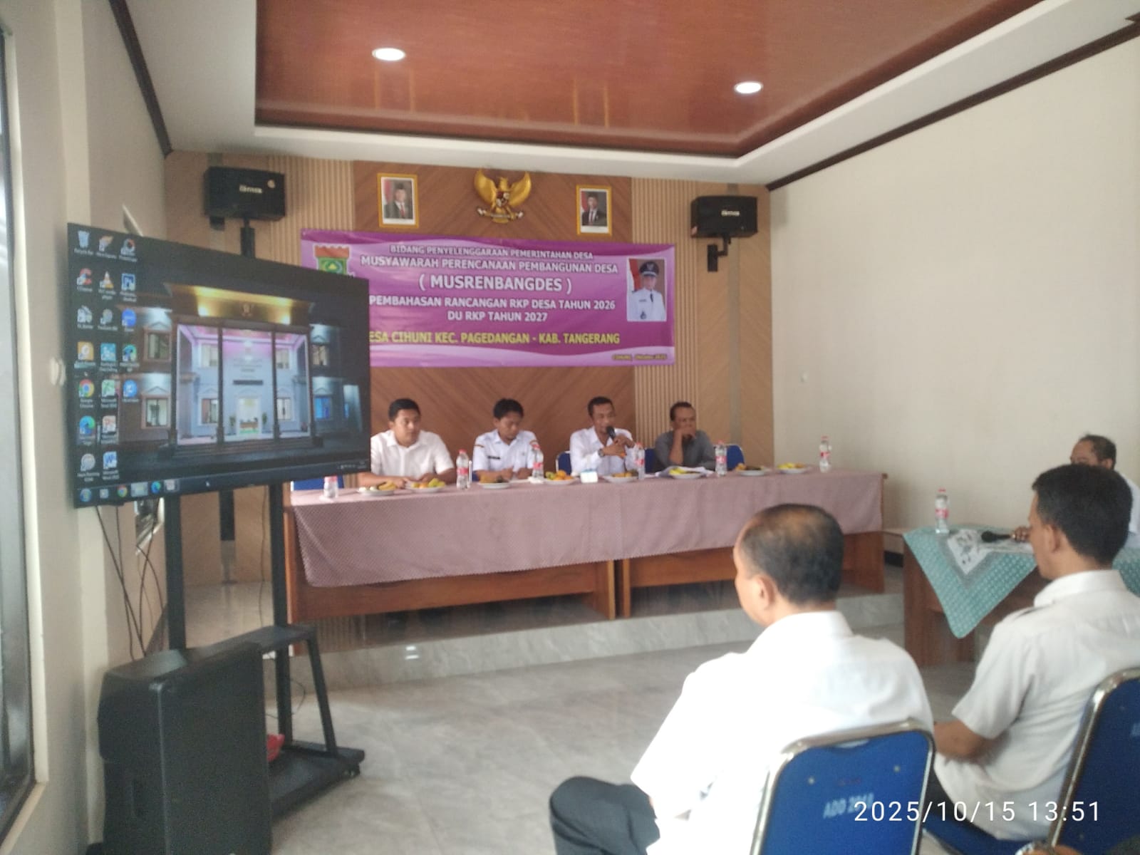 WANMEDIA.CO.ID, KABUPATEN TANGERANG – Musrenbangdes Desa Cihuni yang membahas RKP Desa Tahun 2026 dan DU RKP 2027 berlangsung kondusif dan lancar. Acara ini dipimpin langsung oleh Kepala Desa Cihuni, H. Ahmad Kunaepi, yang akrab disapa H. Agay, dan dihadiri oleh seluruh komponen masyarakat desa Cihuni.