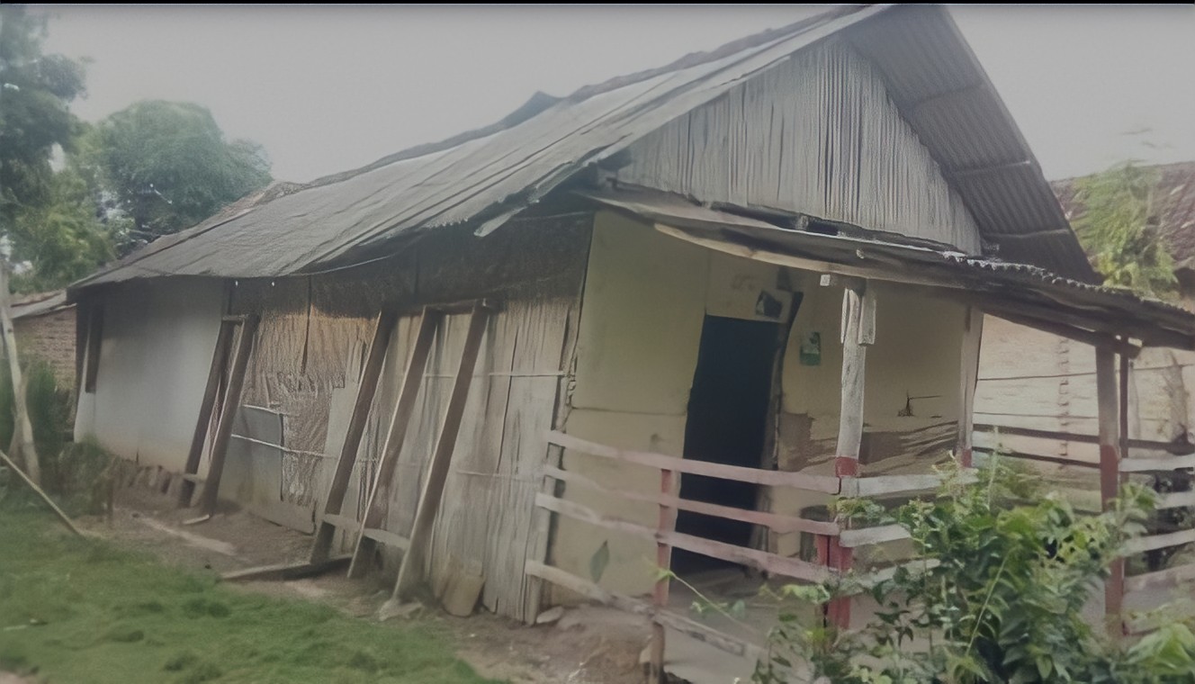Sementara, atap gentingnya hanya sekedar menggunakan asbes yang kondisinya sudah mengalami kerusakan dibeberapa titik. Sehingga jika turun hujan, atapnya bocor.