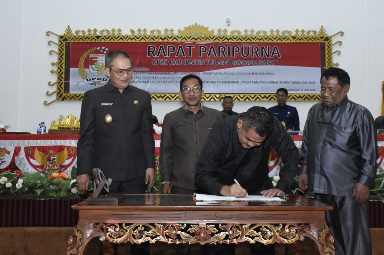 WANMEDIA.CO.ID, TUBABA – Sekretaris Daerah (Sekda) Kabupaten Tulang Bawang Barat (Tubaba) Ir. Novriwan Jaya, S.P., Menghadiri Rapat Paripurna Penyampaian KUA-PPAS APBD-P Tahun Anggaran 2024 dan Pembicaraan Tingkat II atas Raperda RPJPD Tahun 2025-2045. Di Ruang Paripurna DPRD setempat, Senin (15/07/2024).